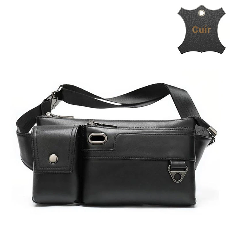 La sacoche banane femme la plus pratique de notre collection. On apprécie son style urbain chic, portable aussi bien sur un jean mode que sur une robe plus habillée. Ses deux poches avant lui confère un style original en plus de pouvoir augmenter sa capacité. Noir uniquement