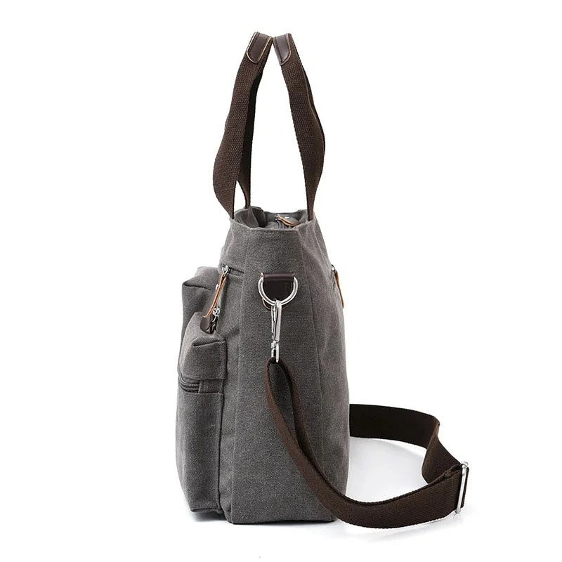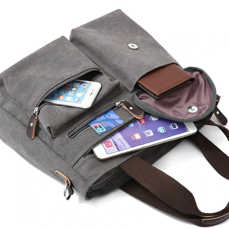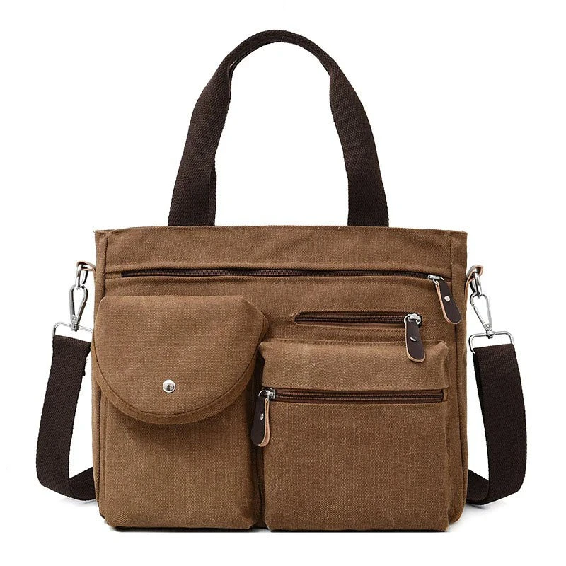 Cette sacoche ordinateur 14 pouces en toile joue la carte vintage afin de transporter votre portable. Réalisée dans une toile épaisse et résistante elle dispose de nombreuses poches et rangements utiles au quotidien.