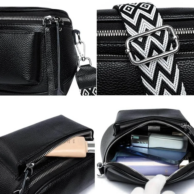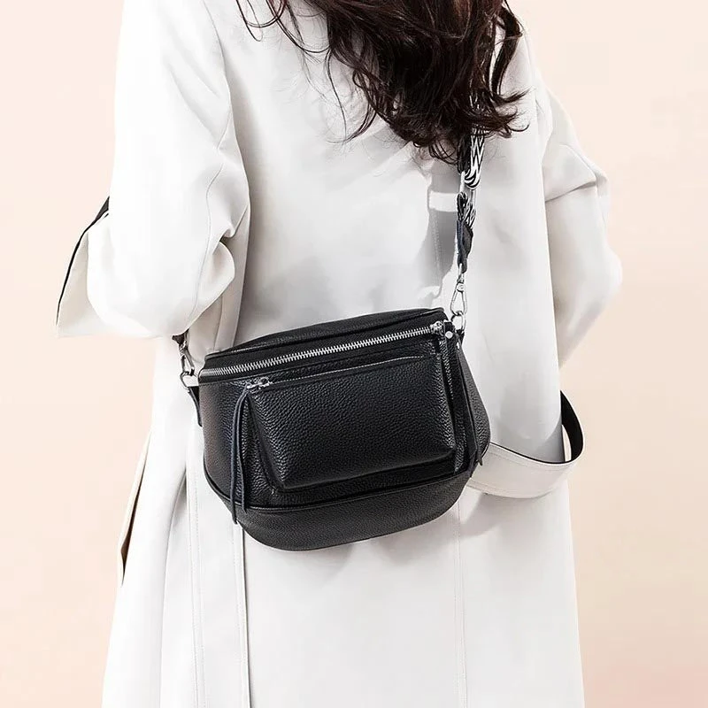 Comparée à d’autres modèles cette sacoche bandoulière femme se fait plus compacte et moins élancée. Vous apprécierez son ouverture sur le dessus et l’accès facile à son contenu. De quoi y glisser téléphone, maquillage et moyens de paiement sans soucis.